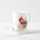 Modern Cardinals Reds and Browns Bone China Cup, A beautiful Bone China Mug featuring a captivating Design of a Male and Female Cardinal. The Two Birds Gracefully Perched , facing each other, their bright red and soft brown plumage creating a striking contrast. Their gentle gaze and the elegant lines of design exude a sense of Love and connection, making this Bone Chins Cup perfect Addition to your collection and lovely companion for your coffee or tea.