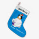 Modern cartoon of a penguin riding a polar bear, small christmas stocking
