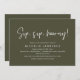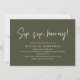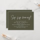 Announce your happily ever after in style with our modern beautiful classy olive green theme design (Sip, sip, hooray!) bridal shower celebration invitation card. With its sophisticated yet playful design, this invitation is sure to set the tone for an unforgettable event. The invitation card features modern minimalist script design, adding a touch of timeless elegance to your celebration. Designed by TeeshaDerrick