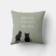 Soft grey green Pillow. Modern stylish cats silhouette illustration HOME Sweet home.
