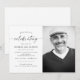 Invite friends and family to honour and remember the life of your loved one with our Modern Celebration of Life Memorial Funeral Photo Invitations. These custom invitations feature a photo of your choice, capturing cherished memories and reflecting the essence of your loved one. The design is modern, elegant, and minimalist, creating a timeless and sophisticated look. With personalised details, these invitations serve as a heartfelt tribute and a meaningful way to invite others to join in remembrance and support. The modern design and customised photo make these invitations a special keepsake for all recipients. Share the details of the memorial service and express your desire for their presence as you celebrate and remember the life of your loved one. These invitations are a thoughtful and touching way to invite others to be part of this important event.