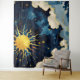 Modern Celestial Sun Stars and Blue Clouds Tapestry