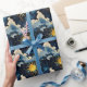 Introducing the Modern Celestial Sun Stars and Blue Clouds Wrapping Paper, a beautiful and enchanting way to add a touch of cosmic magic to your gifts. This wrapping paper features a captivating design predominantly in dark blue, evoking the serene and mysterious beauty of the night sky. At its centre, a large, modern sun radiates brightly, serving as a striking focal point that adds warmth and vibrancy to the overall presentation.
