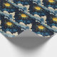 Modern Celestial Sun Stars and Blue Clouds Wrapping Paper