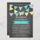 Modern Chalkboard Bunting Boys Baby Shower Invitation