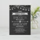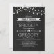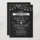 Black chalkboard couples shower invitation featuring string of lights and modern typography decorated with love arrows and accompanied with distressed banner. Perfect invite for rustic couples shower theme with twinkle lights accents.