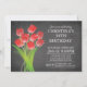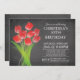 Start your birthday party off right with our pretty bouquet of red tulips party invitation featuring a contemporary bunch of red tulip flowers set on a chalkboard background. Flip our floral flower birthday party for adults over to find a matching chalkboard back for an extra special touch! Available in our shop in a variety of tulip colour choices. Perfect choice for a 21st birthday, 30th birthday, 40th birthday, 50th birthday.