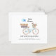 On the move on my bike moving change of address announcement budget card featuring a watercolor feminine bicycle with a flower basket and luggages on the rack. Perfect to let friends and family know about your new address. Add your new details by clicking the "Personalise" button above.