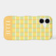 Featuring a modern checker pattern in warm green, yellow and orange, with an orange color block at the bottom to customize with your name, or add a loved one’s name and make it a personalized gift. Lightweight, durable and easy to slip into a backpack or tote, carry it with style wherever you go. Thanks for viewing an Eria Daisy Art design!