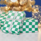 Modern light to dark green gradient and white chequered pattern adds a colourful accent to your presents.