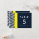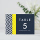 Modern Chevron Blue & Yellow Table Number Card. Look for matching items in my store. Contact me for a custom order.