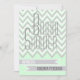 Modern chevron grey, mint green wedding bridal shower invitation with initaials that features a modern zigzag chevron pattern in mint green, grey and white and grey banners with white outline with your text. This elegant design is great for modern brides with its large modern typography but suitable for a traditional wedding too because of the classic chevron stripes. It is part of a wedding set and can be used for any season i.e. spring, summer, fall or winter weddings. Just change background colour- mint green- to the colour of your liking by clicking “Customise it” to choose from hundreds of colours.