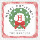 Modern Chevron Merry Christmas Wreath Monogrammed Square Sticker