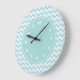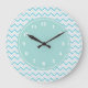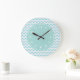 Modern Chevron Pattern Girly Aqua Blue Large Clock