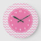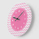 Modern Chevron Pattern Girly Pink Large Clock