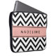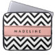 Modern Chevron Pattern & Name Pink, Black & White Laptop Sleeve