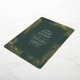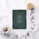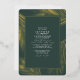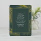 Featuring a modern design with tropical real gold foil palm leaves frame over a dark green background combined with an elegant calligraphy typography, for a chic look.