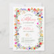 Add a touch of bohemian elegance to your baby milestone, first birthday with our Modern Chic Boho Bright Elegant Colourful wild flowers 1st birthday Invitation. Featuring pink, red, green, and purple hues botanical flowers inspired by wildflowers and watercolor rustic gardens with subtle greenery and modern boho script typography.