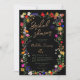 Add a touch of bohemian elegance to your events with our Modern Chic Boho Bright Elegant Colorful wild flowers Bridal Shower Invitation. Featuring pink, red, green, and purple hues botanical flowers inspired by wildflowers and watercolor rustic gardens with subtle greenery and modern boho script typography on black background.