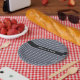 Modern chic dark grey and thin white stripes paper plates you can personalise by adding the name of the party girl. This preppy striped design is perfect to show off your sense of style.
