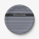 Modern Chic Dark Grey Thin Stripes With Name Paper Plate