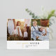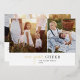 This modern chic foil photo collage new year newsletter foil holiday card is the perfect stylish holiday greeting. This simple boho design features classic sophisticated calligraphy in minimalist black and white with luxurious pressed gold foil accents. Personalise the card with 5 photos (2 on the front and 3 on the back), your family name, first names, and year. Include an optional year in review or family newsletter on the back of the card.