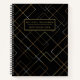 This modern design features a chic and stylish gold linear geometric pattern on a black background. Personalised with your name and additional text by editing the text in the text boxes provided #notebooks #stationery #personalised #name #personalizedstationery #home #office #work #school #gift #gifts #geometric #geometrical #personalizedgifts #custom #customgifts #stockingstuffers #masculine #feminine