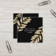 Modern chic gold glitter leaves black makeup square business card