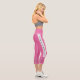 Fun leggings in pink for a keen golfer. The bold geometric pattern at the base of the legs is created from golf clubs and golf balls on a pink background. Bright and cheerful. The text down the side of each leg is in black on a silver grey stripe, and can be customised with your preferred caption - different on each leg if you wish.