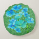 Modern Chic Green Pattern Blue Lilies Throw Pillow