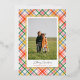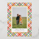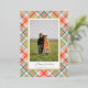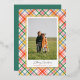 Send holiday cheer in style with this modern chic colourful plaid Christmas photo card featuring an elegant gold foil frame. Personalise the front with your favourite family photo and add a custom Christmas message on the back. Perfect for sharing warm wishes, this personalised holiday card combines vibrant plaid patterns with luxurious gold accents, creating a festive, contemporary, and elegant design ideal for friends and family.
