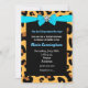 Modern Chic Leopard Print Aqua Blue Bow Party Invitation