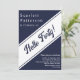 This elegant navy blue and white birthday invitation is perfect for a modern birthday. the simple design features elegant white calligraphy on a navy blue background.