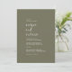This modern chic olive green casual wedding invitation is perfect for a modern wedding. The woodsy boho design features rustic unique and stylish bohemian typography in a minimal woodland forest green colour.