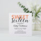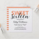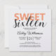 A chic modern look sweet 16 birthday party invitation with sweet sixteen in cantaloupe orange and black. You can easily add your own personal details to this elegant sweet sixteen birthday party invitation. The back of the card features a stylish orange and white stripes pattern. If you need any help or matching products, please contact us through our store.