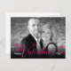 Modern Chic Pink Script Hearts Black White Photo Holiday Postcard