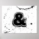 modern chic poster ampersand in black and white with ink splatter background bold wall art decor for home or office.