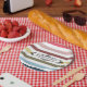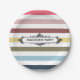 Modern Chic Rainbow Stripes With Party Name Paper Plate