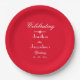 Modern chic, elegant script stylish romantic red wedding paper cake plates that are strong, food-safe, and disposable. Click personalise this template
