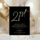 This modern 21st birthday party invite features a chic black background with raised gold foil script and flat white modern typography. The script says "21st". All of the colours are fully and easily customisable. You can even add a photo to the back! Just use "design tool" in the personalisation drop-down menu. Raised foil is available in gold, silver, and rose gold. Choose real foil printing to add the wow factor to your next party invitations!