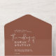 This modern chic terracotta wedding all in one invitation is perfect for a simple wedding. The desert boho design features rustic unique and stylish bohemian typography in an earthy burnt orange rust colour. Hand write your guest addresses on the back of the folded invitation, or purchase coordinating guest address label stickers (sold separately).