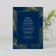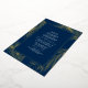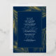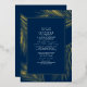 Featuring a modern design with tropical real gold foil palm leaves frame over a navy blue background combined with an elegant calligraphy typography, for a chic look.
