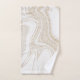 This very elegant pattern immediately caught my attention to give as a gift to a friend for the holidays. It immediately made me think of her very adult, gilt powder room. I personalized it - discreetly, lest she wasn't fond of my nod to her and the play on her name - so she could fold that away if she didn't want it displayed. And bonus - she loves them! So much so that said the set was just going to be for display and no one can touch them! I told her... not quite the point, but they're hers now. The towels aren't quite the fluffy, cozy terrycloth that pops to mind with the highest end of towels, but I imagine that's so that they're suitable to print upon. Discreet, elegant... in tone with the towels.