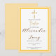 These simple but beautiful baptism invitations are a perfect way to invite your loved ones to celebrate the baptism of your new child. They feature script typography, beautiful soft yellow tones, and gold-tone details in the cross and text of the word 'Baptism'. This design is customisable and ready for your details. Celebrate a momentous occasion with our minimalist baptism stationery and party supplies, where simplicity meets elegance. Imagine solid colour backgrounds that exude sophistication, a blank canvas for your precious memories. Available in different colours, these stationery items allow you to mix and match effortlessly, creating a personalised setting that reflects your unique style and the purity of the occasion. Each piece is thoughtfully designed to enhance the sacred atmosphere, with a focus on quality and aesthetic appeal. Whether you opt for soft pastels or bold hues, the minimal design ensures your message and celebration take centre stage. Transform your event into a serene oasis of grace with these impeccably crafted pieces. Perfect for commemorating this special life milestone, our collection makes planning your baptism both seamless and enchanting.