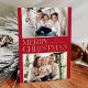Modern Christmas 2 Photo Red and Gold Foil Holiday Card