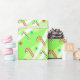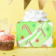 Gift wrap with my festive and colourful candy canes design on a retro-look wavy green and white background.