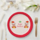 Modern cute Christmas elves on red and ivory Paper Plates.