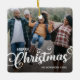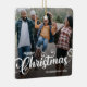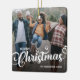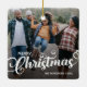 A modern christmas holiday ornament featuring a fully replaceable printed photo on both sides, a dusty overlay, and a scripted 'Merry Christmas', your family name and the year to create an unforgettable keepsake that you can cherish forever.