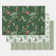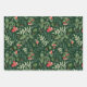 Modern coordinated gift wrap of 3 wrapping sheets featuring Christmas Foliage Forest and Rustic Stripes in forest and sage green. The first design features mistletoe, holly, spruce and Christmas berries in green and red. The second designs features a rustic forest of Christmas trees in sage greens. The third design features rustic stripes in cream in sage green. Perfect for a modern, yet traditional Christmas.