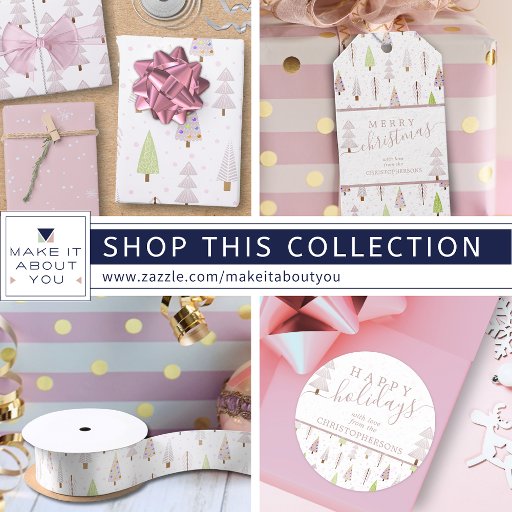 Modern tissue paper designed with abstract Christmas trees and winter forest trees in the snow in trendy blush pink and lime green against a white background. Contact the designer BEFORE ORDERING via Zazzle Chat or makeitaboutyoustore@gmail.com if you'd like this design modified, on another product or would like coordinating items.